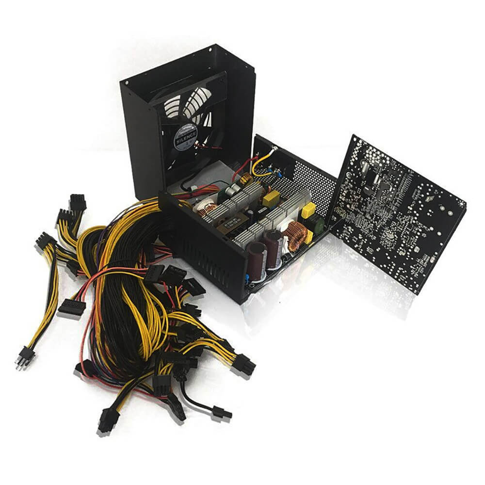 Многоканальный электромеханический источник для майнинга. Преимущество блока питания заключается в высокой надежности. Многофункциональная схема защиты, с функциями защиты от перенапряжения, перегрузки по току, пониженного напряжения, короткого замыкания, освещения. Сертификация 92 PLUS Gold